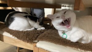 ミルクとユズの2匹は決して仲良くありません。喧嘩ばかりしていますが時々近くで毛繕いし合っているのを見かけます。